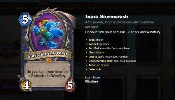 新カードとしては、Inara Stormcrash、Primal Dungeoneer、Wailing Vapor が登場。後者の 2 つはドロー パワー、Inara は彼女が与えることができるバフです。