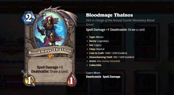 プレイヤーが運が良ければ、Death Speaker Blackthorn を入手できるかもしれません。ブラックソーンはコスト7のミニオンで、コスト5以下のミニオンをデッキから直接召喚します。運が良ければ、これらのミニオンは、死んだときの断末魔効果のおかげで、ミニオンを召喚できます。要するに、ボードで死んだミニオンが多ければ多いほど、戦闘に参加できるミニオンが増えます。そして、それらのミニオンが死んでも、一部のミニオンは自分のミニオンを召喚することができます.敵はあなたのミニオンの餌食に対処するためにカードを消費する必要があるため、これは敵のカードに負担をかけます。