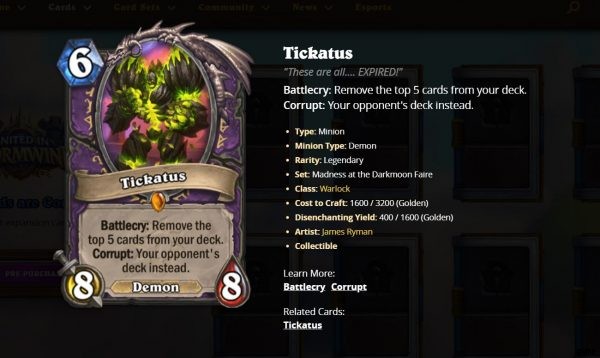 その他のカードパックとしては、「マッドネス オブ ザ ダークムーン フェア」と「アッシュ オブ アウトランド」が今なお根強い人気を誇っています。これは、今日お話しするいくつかのデッキで役立つパック内のカードの数によるものでもあります.