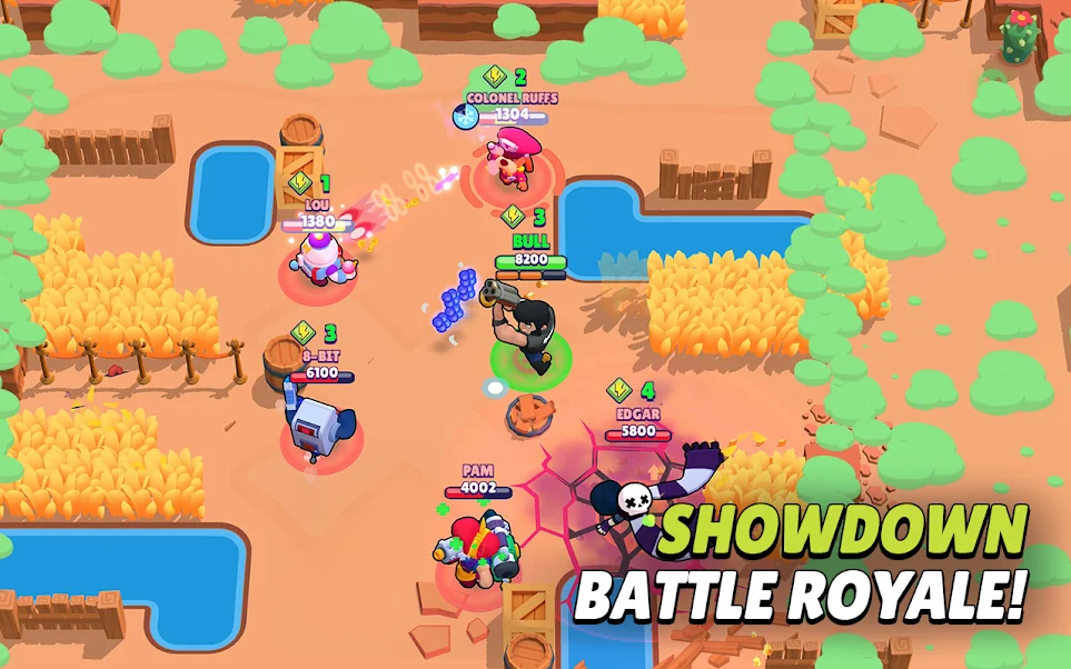 このゲームには、3 対 3 とバトルロワイヤルの 2 つのゲームモードがあります。前者は従来の MOBA のように動作します。3 人のブロウラーのチームが別の 3 人のチームと戦います。リーグ・オブ・レジェンドのハウリング アビス マップを連想させるレーンは 1 つしかないため、戦略性が低くなり、喧嘩や戦闘が増えます。バトル ロワイヤル モードは、バトル ロワイヤル ゲームと同じように機能しますが、小さなエリアに詰め込まれ、戦利品はなく、敵を倒すために必要なのは射撃だけです。