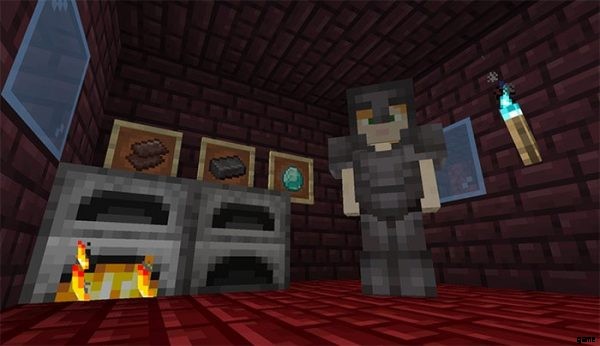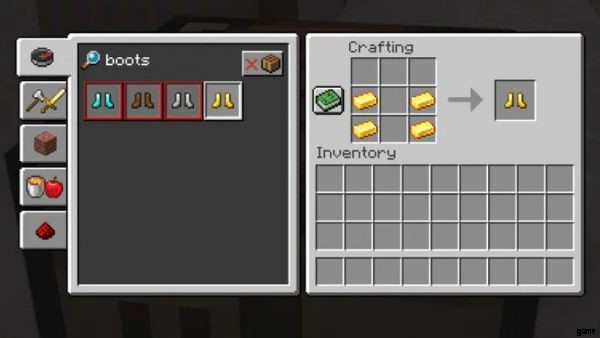 2.下の写真のように、4 つの革、金、または鉄のインゴット、またはダイヤモンドを左右の中央と隅のスロットに配置します。