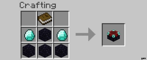 2. 3×3 のグリッドに、黒曜石 4 つ、ダイヤモンド 2 つ、本 1 つを下の図のように正確に配置します。