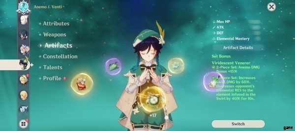 A rule of thumb for Anemo characters is to focus on their Swirl if they have one. If you have characters like Venti, Sucrose, or Kaedehara Kazura, you need to have artifacts that focus on Elemental Mastery. This will greatly benefit them when they do their Elemental Burst because it allows the Swirl to make more damage. If your character doesn’t have a Swirl ability like Anemo Traveler and Jean, stick to an artifact build that focuses on Attack Percentage and Energy Recharg, so you can easily spam opponents with your Elemental Skill and Burst.