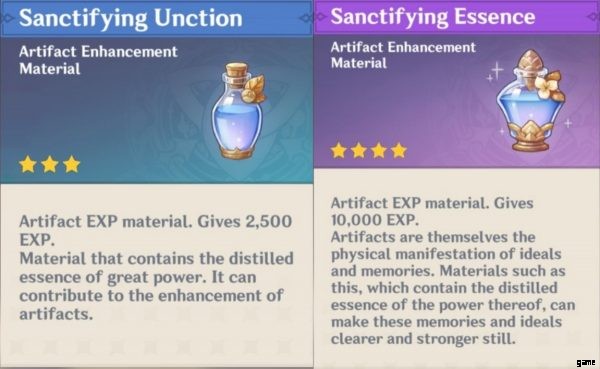 Alternatively, you can use the Sanctifying Essence or Sanctifying Unction from the Realm Depot in your Serenitea Teapot. These items grant 10,000 and 2,500 Artifact EXP material respectively. These are great substitutes if you badly need to enhance artifacts but don’t have the extra ones to do so. Just bear in mind that you can only purchase these with Mora in a limited quantity per day.