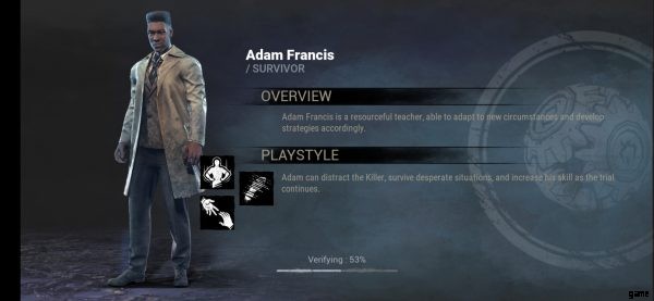 別のサポート キャラクターであるアダム フランシスは、潜在的な犠牲者から殺人者をそらすのに最適です。気晴らしは優れた戦術的特典であり、正しく使用すると、数人以上の生存者をフックから救うことができます.