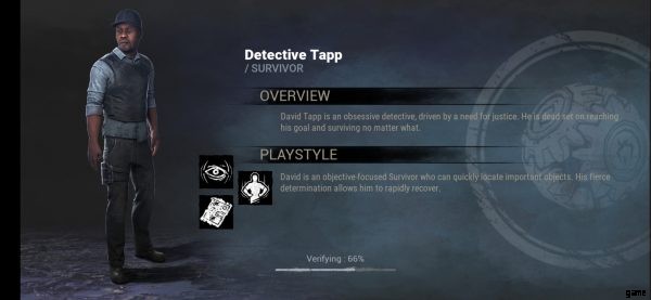 ディビッド タップ刑事は Saw フランチャイズのキャラクターで、たまたま素晴らしいテナシティ パークを持っています。これにより、他のサバイバーよりも速くキラーから這い上がることができます。それとは別に、探偵の予感では、発電機を修理した後に近くの発電機、チェスト、トーテムを見ることができます。