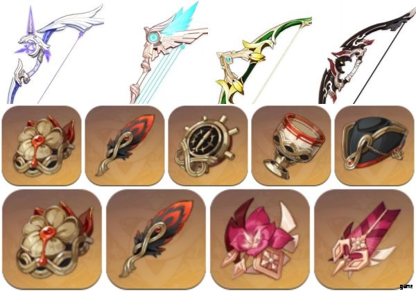 武器については、攻撃力の増加を付与し、通常攻撃とチャージ攻撃からのダメージを増加させるアモスの弓を使用できます。アモスの弓を持っていない場合は、スカイワード ハープ、ビリディセント ハント、またはラストと同様の効果があるため、簡単に交換できます。