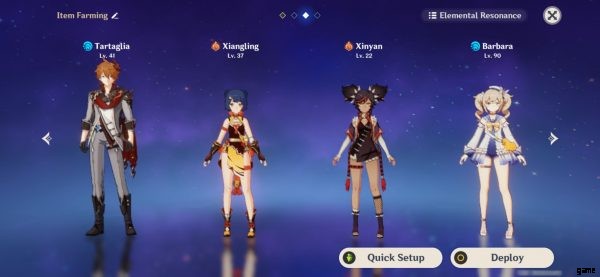 この構成では、キャラクターをチャイルドに合わせたい場合は、キャラクターのビルドを変更する必要がある場合があります。 Xiangling の場合、彼女をパイロ DPS として、Xinyan をサポートとして、Barbara を完全なヒーラーとして構築します。