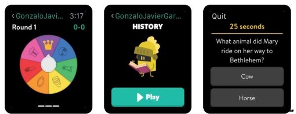トリビア アプリが好きなら、リストされているすべての Apple Watch ゲームの中で、これが最も理想的かもしれません。 Trivia Crack には、脳細胞を機能させる何十万もの質問のデータベースがあります。普通のQ&Aゲームでもありません。質問のカテゴリは、ホイール オブ フォーチュンのような糸車を介してランダムに決定され、友達と競うことができます。