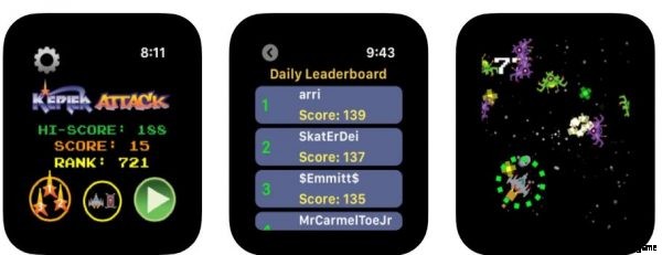 レトロなヒット作であるスペース インベーダーにインスパイアされたこの有料の Apple Watch ゲームは、同じ仕組みに従っています。ケプラー アタックでは、宇宙船を操縦して銀河を横断し、やってくるエイリアンの船をすべて排除します。グラフィックに関しては、ゲームはピクセル アートにこだわっていますが、スペース インベーダーの外観からは大きく進歩しています。