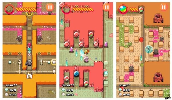 各迷路には、レーザー、火の氷河、さまざまな恐ろしいモンスターなど、独自のハードル セットがあります。これらのモンスターを避けるか、以前の迷路で集めた武器で攻撃する必要があります。武器以外にも、さまざまなキャラクター、パワーアップ、収集品をアンロックできます。