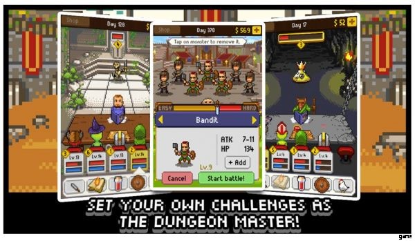 このゲームは主に、敵をかわすために冒険者を派遣することを含みます。彼らがより多くの EXP と貴重なアイテムを獲得するのを助けるために、ダンジョンを探索し、モンスターの大規模なパーティーと戦うためにサインアップすることができます.そうすることで、町の人気が高まり、より多くの冒険者が町に移動して前哨基地を守るようになります。さらに、ダンジョンで戦うことで、より多くの町のポイントを獲得できます。これを使用して、より多くの建造物を購入できます。