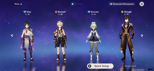 この構成では、Xiao がメインの DPS および攻撃者として機能します。 Sucrose は、Xiao の Elemental Burst を連続してスパムできるように、彼に Anemo Energy を提供するのに役立ちます。ベネットは追加のブーストを提供し、ヒーラーとしても機能します。最後に、Zhongli は盾で敵からのダメージを防ぐことができます。 Sucrose と Zhongli は優れたクラウド コントロール キャラクターでもあるため、複数の対戦相手に対して Xiao の Elemental Burst を簡単に使用できます。