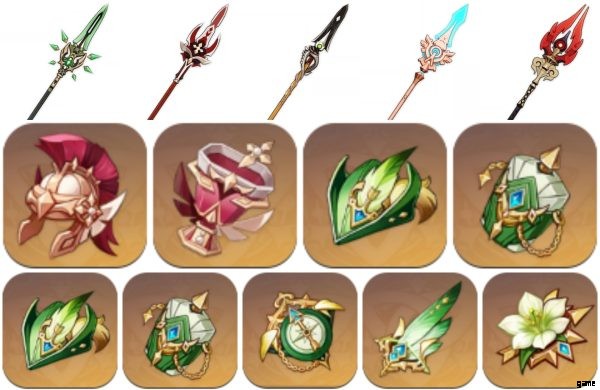 アーティファクトに関係なく、彼にとって理想的な武器は依然として原初の翡翠の翼のある槍です。ただし、ATK をブーストする Vortex Vanquisher や Crit DMG をブーストする Homa Staff で切り替えることができます。