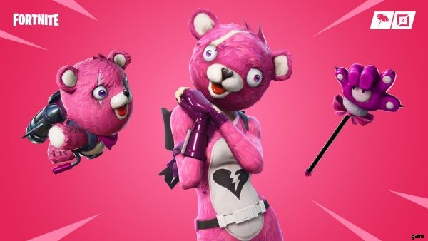 武器の火力をさらに高めたい場合は、カドル チーム リーダーと呼ばれるこのピンクの擬人化されたクマを見つけてください。 Fortnite キャラクターは、1 秒あたりのダメージ (DPS) が高いレンジャー アサルト ライフルを提供します。彼女のアイテムの中には、発射速度が速くクリティカル ダメージを与えるマークスマン シックス シューター ピストルもあります。