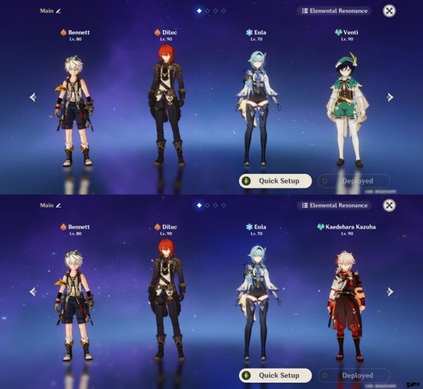 推奨チームでは、サポートとヒーラーをベネットにメインにします。次に、ダメージを与えることができる強力なパイロ DPS が必要ですが、それでもベネットのバッテリーとして機能するため、エネルギーを簡単に充電してスキルとバーストをスパムすることができます。 Sub-DPS の場合、Eula はかなりの量のダメージを与え、Diluc がまだ回復している間はいつでも機能するため、Eula を使用できます。最後に、チームに Venti や Kazuha のような Anemo キャラクターが必要です。なぜなら、彼らはクラウド コントロールを担当するからです.