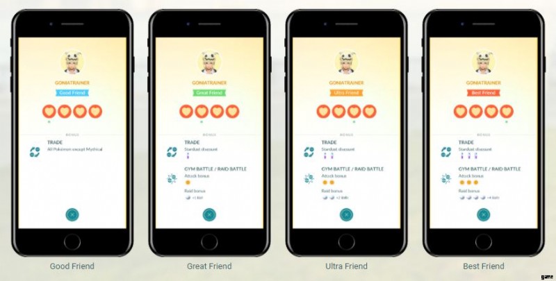ポケモン GO では、他の人と取引することはできません。友情レベルに応じて、4 から 100 スターダストの範囲で、両方のプレイヤーにトレード コストがかかります。覚えておく必要がある友情レベルは次のとおりです。