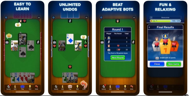 Spades:Card Game+ と Hearts:Card Game+ は、どちらもゲーム感覚で親しみを感じることができます。ただし、直感的な人工知能 (AI) が従来のゲームプレイとは異なる課題を発生させるため、プレイヤーは驚きに満ちています。