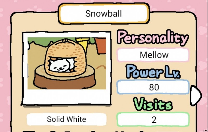 収集したすべての猫を閲覧できるキャットブックがあり、好みやパワー レベルなどの追加情報が含まれています。訪れたことのない猫は、(?) マークの付いたシルエットで謎に包まれます。