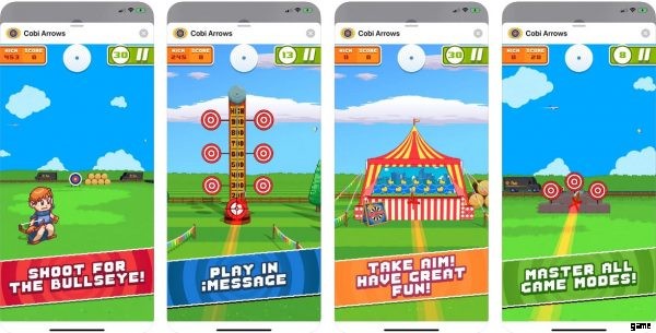 Our fifth iMessage game is Cobi Arrows, a game from the Cobi series of Apple App Store games. A fun archery game at its core, Cobi Arrows has several modes that remind us of county fairs. Aside from that, the game also has a decent simulation of distance and wind factors that can change how you aim and shoot your bow.