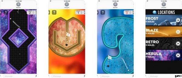 The second iMessage game on this list is Mr. Putt. This game is a fun applet that lets you play nine-hole golf with a friend. Although a bit more arcade-like than a true golf experience, this game offers four different golf courses to choose from:frost, blaze, retro, and nebula. Each of the four has its unique challenges and layouts that you have to think about to solve.