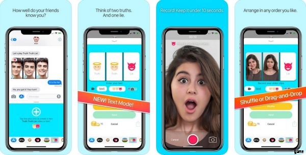 An interesting online variation of the Truth or Dare game, Truth Truth Lie has two modes to choose from — video and text only. Both modes have you and your friends tell two truths and one lie. The two of you then try to guess which of the three is the lie. As obvious from the mode names, the video mode has you record your three options as short selfie-like videos, while the text-only mode lets you write it onto the applet instead.