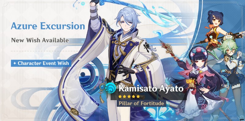 神里アヤトの特別バナーは、バージョン アップデート直後から開始され、4 月 19 日まで続きます。不屈の精神の柱と呼ばれるアヤトは、ブロックの新しい子供であり、5 つ星のハイドロ キャラクターです。彼はイナズマのカミサト一族の現在の当主であり、ヤシロコミッショナーを務めています.彼の到着により、2021 年 7 月にデビューした Cryo のキャラクターである妹の Ayaka と再会します。