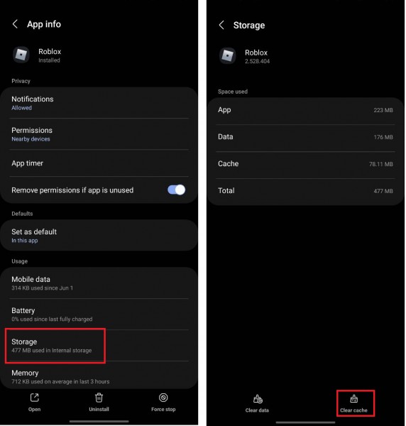 Roblox が機能しない原因となっているアプリのバグを取り除くもう 1 つの方法は、アプリのキャッシュをクリアすることです。 Android デバイスでは、Roblox キャッシュをクリアするには、アプリを強制的に停止するのとほぼ同じ手順に従います: