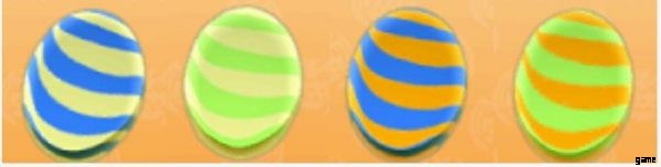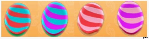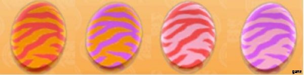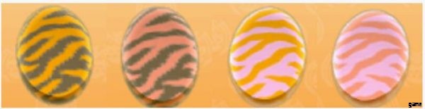 別のフライング ワイバーン タイプであるバサリオスの卵には、虎の縞模様があります。色の組み合わせは次のとおりです:ブラウン/ホワイト、ピンク/ホワイト、ブラウン/ライト オレンジ、ピンク/ライト オレンジ。
