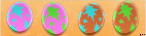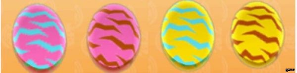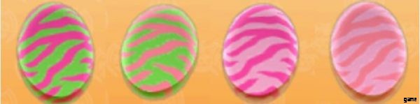 ケズーの卵には虎の縞模様があり、色はピンク/水色、明るい緑/水色、ピンク/黄色、明るい緑/黄色です。