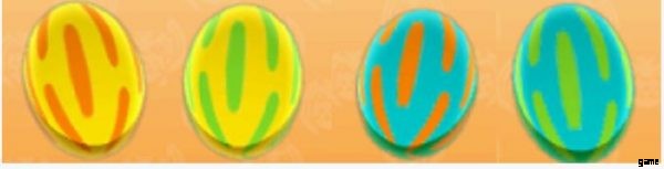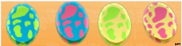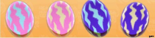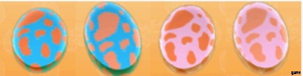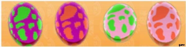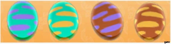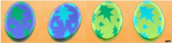 イアンクックの卵は、イアンガルーガの卵と同じまだら模様です。また、青/薄紫、シアン/薄紫、青/黄、シアン/黄のいずれかの色があります。