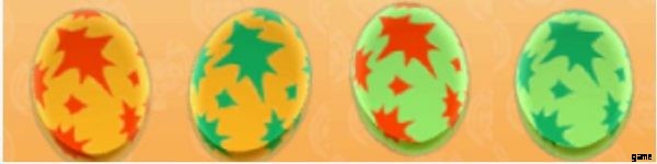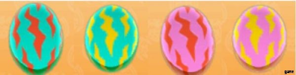 ケチャワチャの卵が爆発の形をしていて、オレンジ/ライト オレンジ、グリーン/ライト オレンジ、オレンジ/ライト グリーン、グリーン/ライト グリーンのいずれかの色の組み合わせを持っている場合は、ケチャ ワチャの卵を見つけたことがわかります。