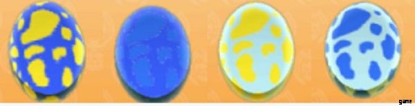 グレートバッジの卵はバードワイバーンクラスに分類されるため、サイズの異なる斑点があります。色は次のとおりです:黄/青、水色/青、黄/白、青/白。