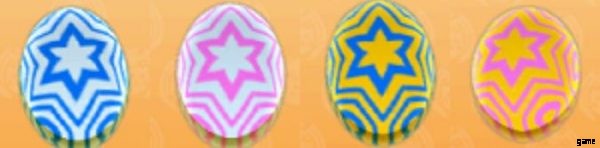 キリンの卵には、中央に輪郭が描かれた六芒星 (または六芒星) があり、エルダードラゴンのタイピングを示しています。ブルー/ライトブルー、ピンク/ライトブルー、ブルー/ライトオレンジ、ピンク/ライトオレンジのいずれかの色の組み合わせで見つけることができます。