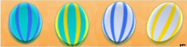 包まれたネルスキュラの卵にも縦縞があります。ただし、色の組み合わせは異なります。つまり、青/シアン、黄/シアン、青/白、黄/白です。