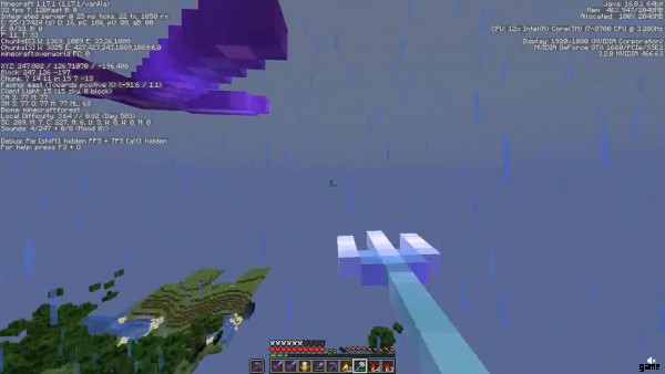 ただし、落とし穴があります。 Minecraft Riptide エンチャントは、濡れているときにのみ使用できます。つまり、水の中に立っているか、水に沈んでいるか、雨の中に立っている必要があります。
