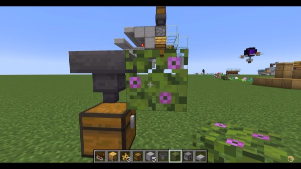 次に、開花したツツジをホッパーのすぐ前に置きます。または、花を使用している場合は、ホッパーの前に草または土のブロックを置きます。その後、その草または土ブロックの上に花を置きます。それがミツバチの食料源になります。