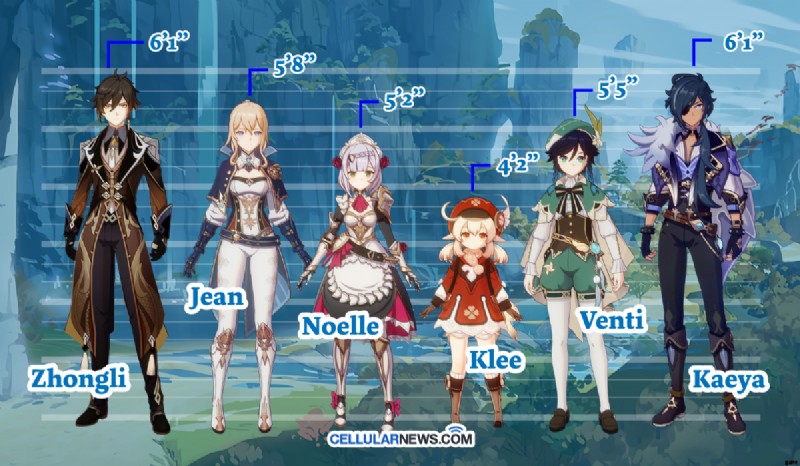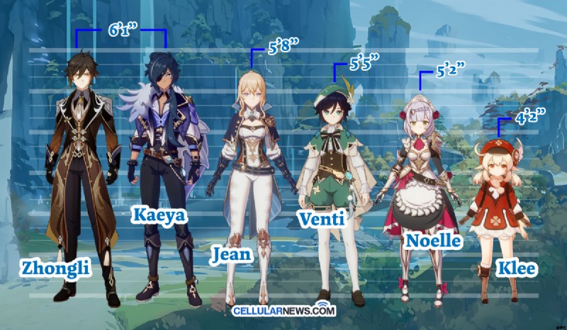このリストのGenshin Impactキャラクターの身長は、かかとを含む靴が考慮されているため、完全に正確ではない場合があります.したがって、ここにリストされている身長は、キャラクターにアクセサリーがない場合と正確に一致しない場合があります.
