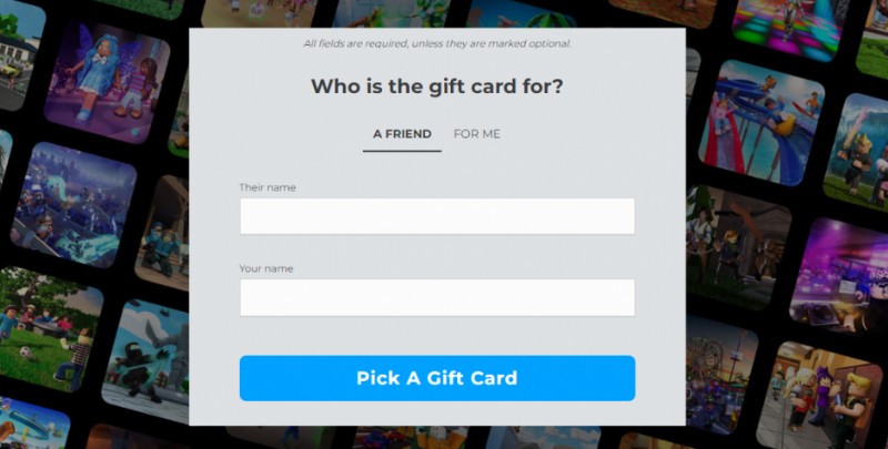 ステップ 2. Roblox は、「誰のためのギフトカードですか?」と尋ねます。 友達を選択 自分の名前と友達の名前をそれぞれのフィールドに入力します。