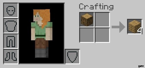 3. 4 つの木の板ブロックをインベントリに移動します。