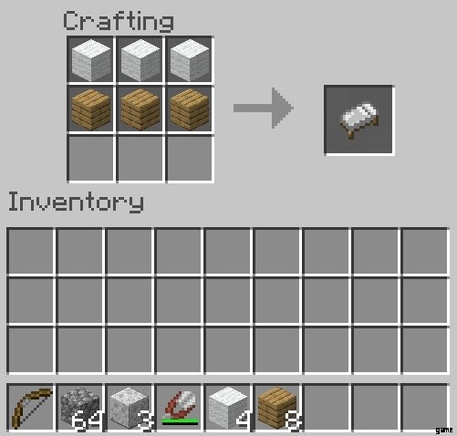 羊毛と木材が揃ったので、Minecraft でベッドを作る方法を体験できます。あなたが作ることができる基本的なベッドは白であることに注意してください. Minecraft でカラフルなベッドを作る方法については別のセクションがあるので、このチュートリアルの後に読み続けてください。そうは言っても、基本的なベッドの作り方は次のとおりです。