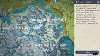 - 雪に覆われた道のテレポート ウェイポイントに移動します。
