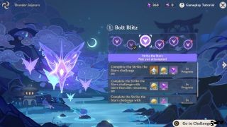 Thunder Sojourn イベントを試すことは、2 つの理由で賢明です。多くの報酬 (真新しい Talent レベルアップ マテリアル、Primogems、無料の Beidou を含む) を取得し、新しい Inazuma Electro パワーを練習できます。 Thunder Sojourn イベントは、Electrograna、Thunder Sphere メカニズム、および Thunder Dwelling (Electro 戦闘メカニズム) の使用を含む 4 つの異なる課題で構成されます。