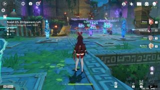 一緒に参加するパーティーを選択することができ、協力プレイもできますが、通常のスキルでは実際に敵にダメージを与えることはできず、エレメンタル アビリティを使用することはできません。また。しかし、あなたはできます キャラクターの特定の要素を使用して、配置したさまざまな種類の Mechanici との要素反応を開始するため、どのキャラクターを連れて行きたいかを慎重に検討することが重要です。 Amber, for example, works well on the training stage as the default Anemo-powered Mechanici spreads the fire element from her charged bow shot to others, creating the Swirl reaction.
