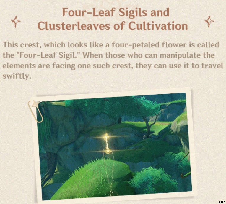 多くの場合、Sumeru の探索では、これらの浮遊する 4 つ葉のシジルを見つけることができます。データによると、要素を操作できれば、長距離を移動するために使用できます。これが正確に何を意味するのか、なぜそのように具体的に表現されたのかはまだわかりません。なぜなら、すべてのプレイ可能なキャラクターが要素を操作できるからです.