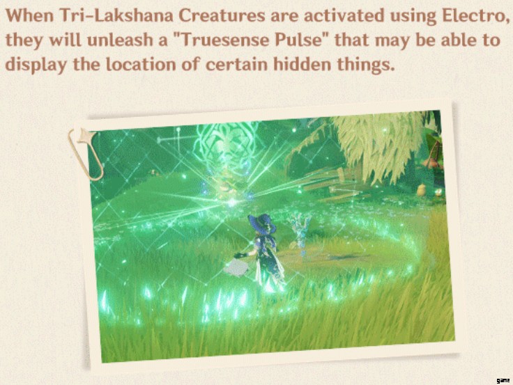 Truesense パルスは、主に Tri-Yana シードが Electro と接触したときに放出されます。パルスは、特定の隠されたアイテムとその近くのオブジェクトを明らかにします。これは、スメルのオーバーワールドパズルとチャレンジでの使用の別の指標です.