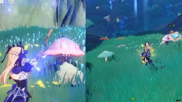 新しい隠れた花が現れ、近くに行くとそれをアクティブにすることができます。これにより、Fungi の敵が召喚されます。それらを取り除き、倒すと共通のチェストが表示されます。また、山の壁に新しい矢印の遺跡が表示されます。これにより、次に解決するパズルに進むことができます。