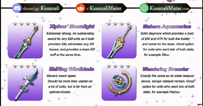 非常に強い。 EM を提供し、ER の問題を解消し、同時にチームの ER バフを提供するため、EM ユニットにとって優れた剣です。