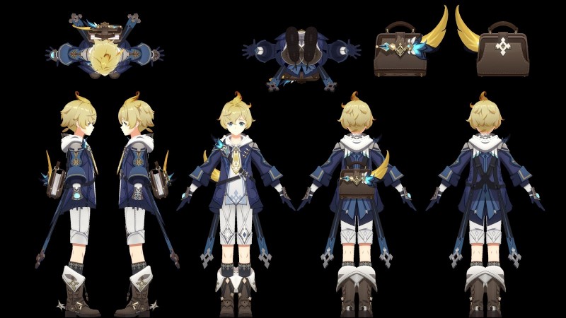 ミカは、モンドシュタット出身の平均的で、勤勉で、素朴で、むしろ恥ずかしがり屋のキャラクターのように見えます。初心者に見えるが、地図作成の天才であり、エウラ率いるファヴォニウス騎士団の偵察中隊に所属している。彼は正直な魂であり、プッシュオーバーのように見えるかもしれませんが、状況が必要なときに自分の立場に立つ方法を知っています.彼のデザインは予告編ですでに公開されていましたが、低解像度モデルのスクリーンショットを使用するのではなく、最終的に彼のモデルのリーク バージョンをクローズアップしました。