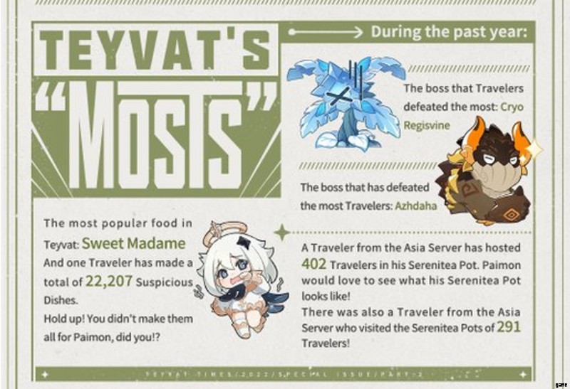 この新聞のようなコラムは、Genshin Impact で過去 1 年間に私たちの居住者である非常食を記録し、開発者でさえも注目するほど、献身的で境界線上の非常識な旅行者がどのように名を馳せたかを記録しています。しかし、これらのコラムが必要とするのはそれだけではありません。普通のプレイヤーが自分でプレイするだけでは知らないランダムなトリビアが他にもあり、この新聞はこれらの奇妙で奇妙な事実のいくつかを明らかにします.
